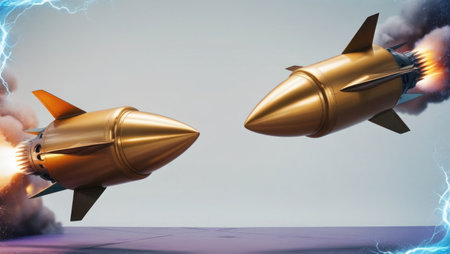 The collision of two golden rockets in flight