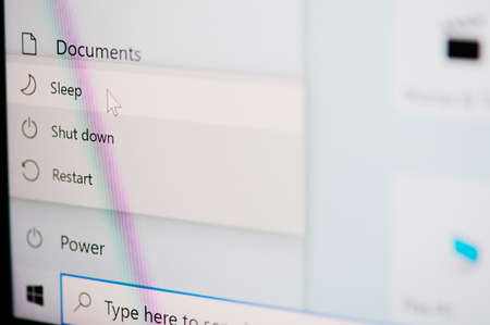 New york, USA - May 17, 2021: Sleep button on windows screen on screen macro close up view