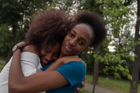 the Happy African American women cuddle, friends