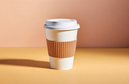 Cardboard coffee cup with sleeve mockup - front view. illustration