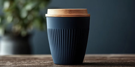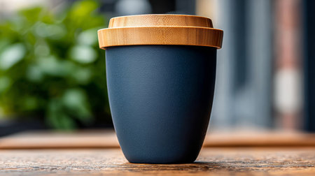 Chic Dark Blue Coffee Cup with Bamboo Lid for Sustainable Daily Use and Enjoying Aromatic Drinks