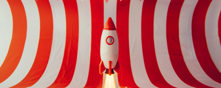 A stunning 3D illustration featuring a rocket poised for launch against a vibrant orange backdrop. The dynamic smoke effect adds energy and excitement.