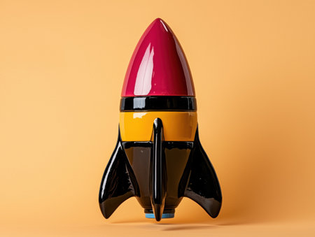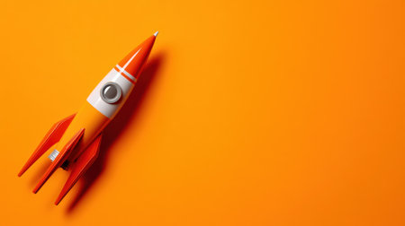 A vibrant rocket model rests against a striking orange backdrop, ideal for projects in education, technology, and creative design.