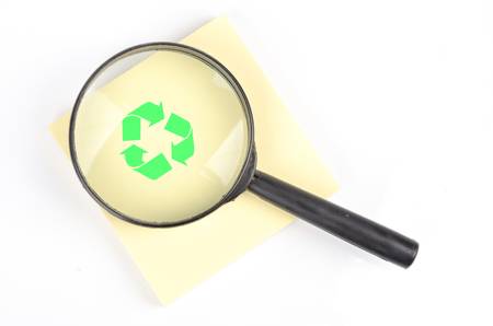 Crumpled paper pieces and paper with recycle sign