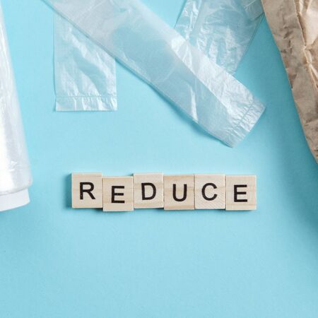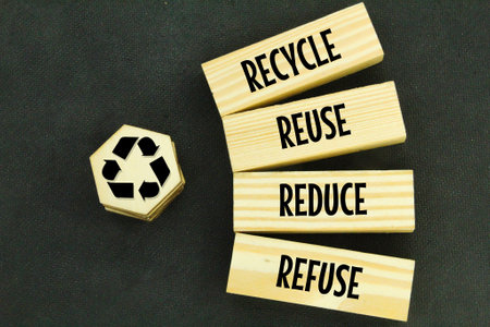 Reduce Reuse Recycle text on wooden blocks, spreading the classic sustainability mantra. Waste reduction concept.