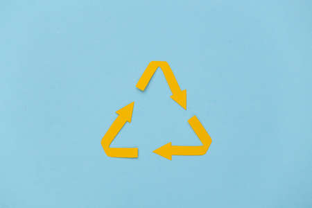 Recycled arrows sign on blue pastel background.