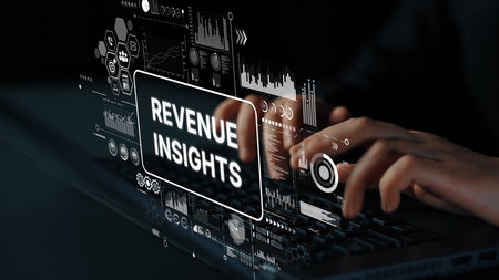 Hands Engaging with Data Visualizations to Analyze Revenue Insights and Business Growth Metrics on a Modern Laptop Display. Asymptotic smart data analytic.
