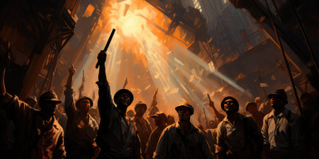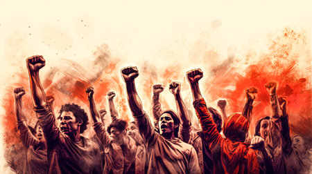A group of people holding up fists in the air. Generative AI image.