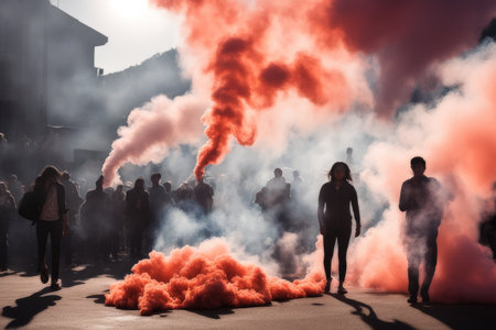 Police dispersing tear gas amid a crowd of protesters, showing the chaos and emotional turmoil. Generative Ai