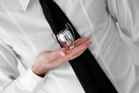 motivation of business success. trophy and prestige. got prize. guy celebrate victory.