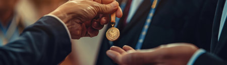 Employee receiving a medal for outstanding contribution recognition of hard work and skill a moment of pride