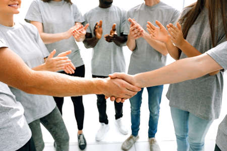 close up. the handshake of the delegates of the youth summit students