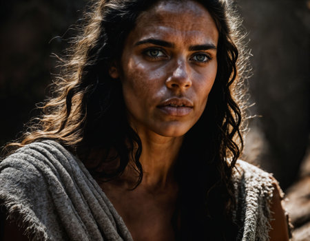photo of of strong cavewoman inside dark cave, generative AI