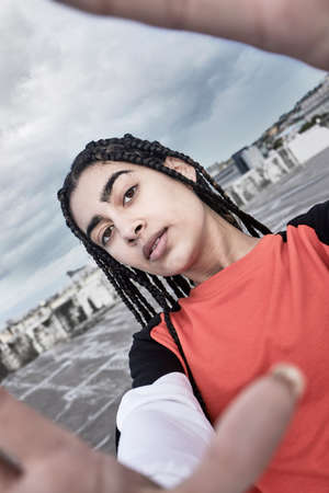 Non binary hispanic transgender mid Tomboy. Androgynous authentic identity for gender and sex education