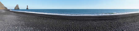 Panorama of Reynisfjara Beach in a foggy day, Iceland