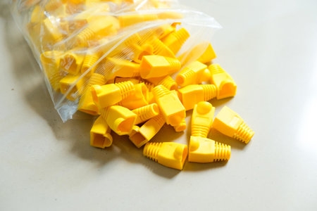 Yellow LAN cable plugs for internet communication