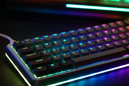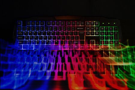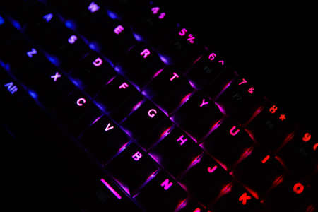 Close up of Computer RGB gaming keyboard, Illuminated by colored LED