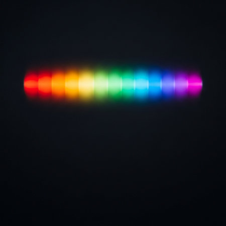 A spinning wheel a vibrant rainbow spectrum with radiating light flares against a stark black background.