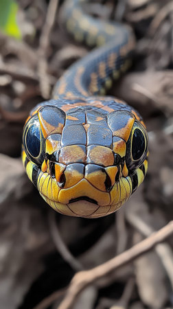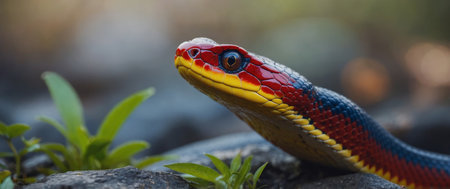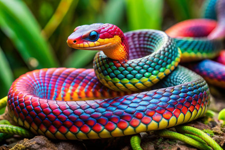 Captivating Coils Vibrant Serpentine Patterns in Closeup of a Colorful Exotic Snake in its Natural Habitat