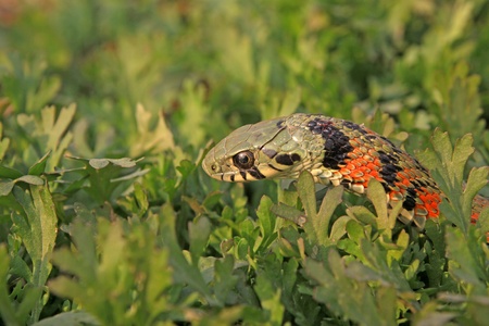 Snake isolated on green nature background