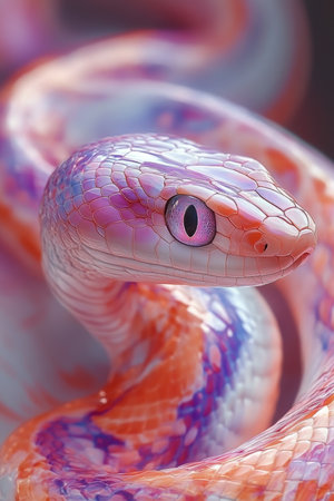 This image showcases a stunning snake with colorful scales and intricate patterns, emphasizing the beauty of wildlife and the importance of preserving natural habitats.