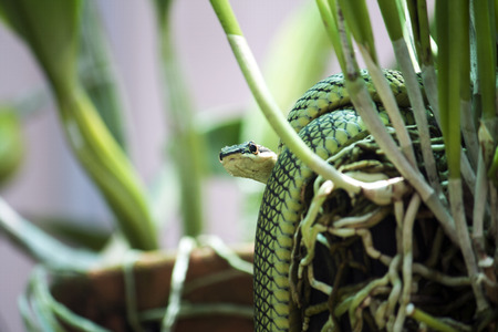 Chrysopelea ornata in orchid pot