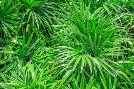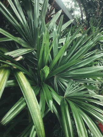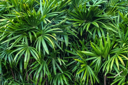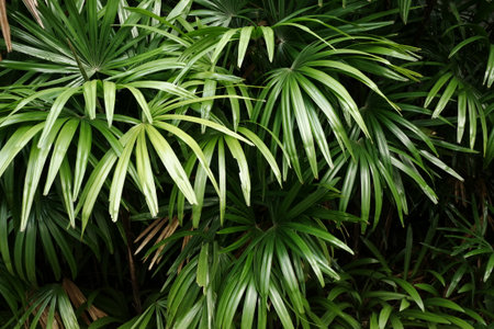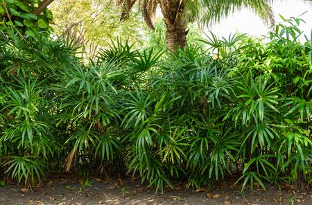 Reed rhapis or Slender lady palm tree in tropical garden in thailand