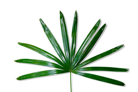Close up of green palm tree leaf isolated on white background.