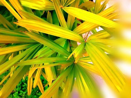 Tropical green and yellow palm leafs which it abundant in rain forest. It always usually for decorate in home and office.