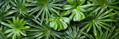 abstract stunning panorama green leaf texture, tropical leaf foliage nature dark green background. green banners nature tropical concept.