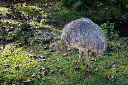 Darwin’s Rhea on the grass in autumn on sunny morning