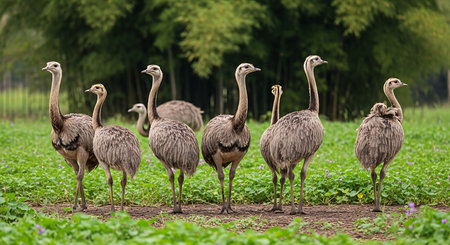 AI Generated. Curious ostrich in natural habitat with vibrant greenery