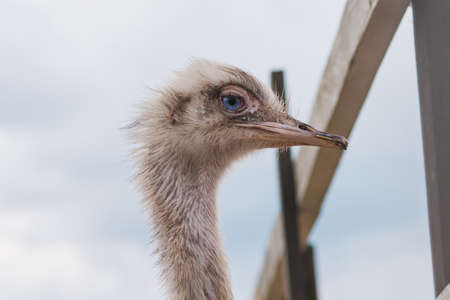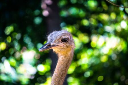 Portrait of an ostrich in the zoo. Close-up