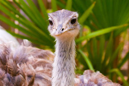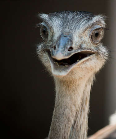 Gray rhea. Closeup of a funny bird face looking at the camera.