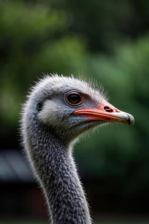 Portrait of an ostrich on a bokeh background.