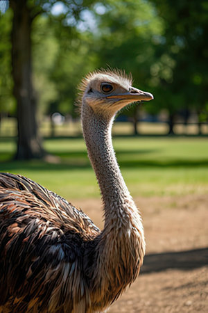 Ostrich in the park. Portrait of an ostrich.
