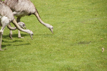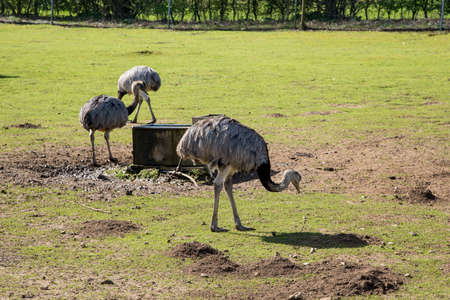 Group of ostriches walking on the grass in the park.