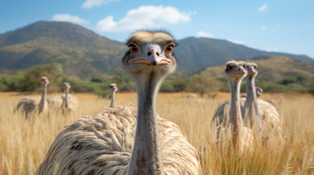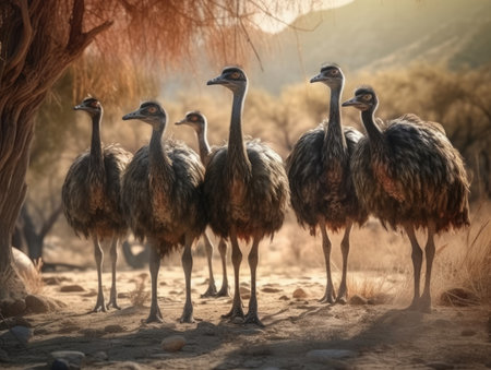 Group of Ostrich in natural habitat - image generated with Generative AI
