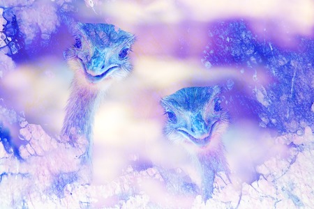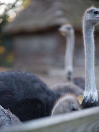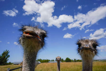 These are an ostrich on an ostrich farm. They are funny animals with long eyelashes and expressive eyes. Can be used for websites, brochures, posters, printing and design.