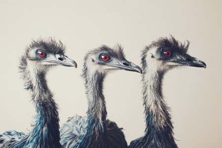 Creative photography featuring funky emu birds in an artistic animal conceptual setting