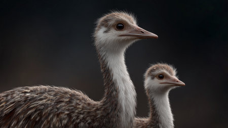 Close up of two ostriches looking at each other