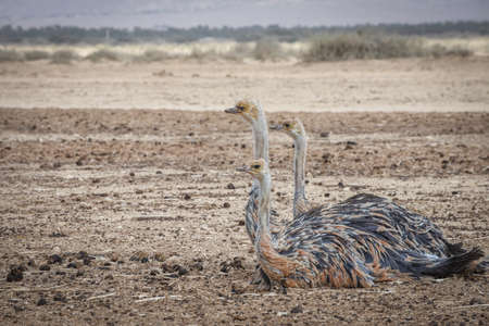 Three Ostriches in the desert. Travel in nature reserves