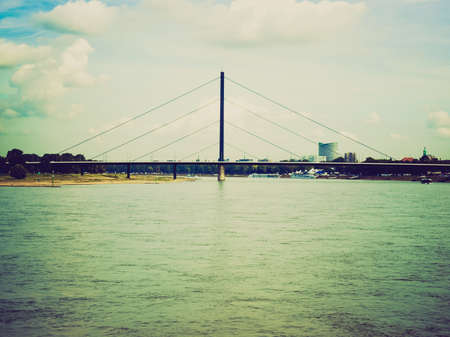 Vintage looking Duesseldorf panorama with river Rhein (Rhine), Germany