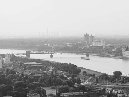 Aerial view of the city of Koeln, Germany in black and white in black and white