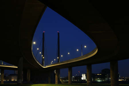 DUSSELDORF, GERMANY - 13 AUGUST 2020: The Rheinkniebrücke is a cable-stayed bridge over the Rhine in Düsseldorf, opened to traffic on 16 October 1969.