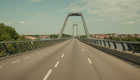 voew on the autobahn bridge at speyer crossing the rhine river, Rheinland Pfalz, Germany