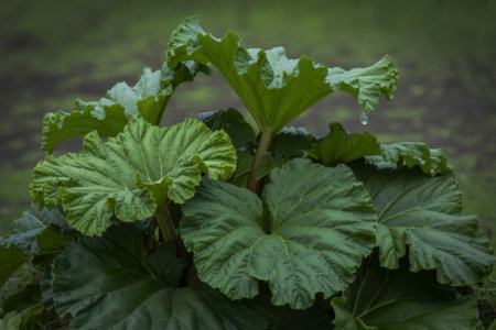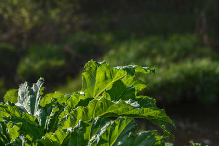 Close-up of the leaves of the rhubarb plant. High quality photo