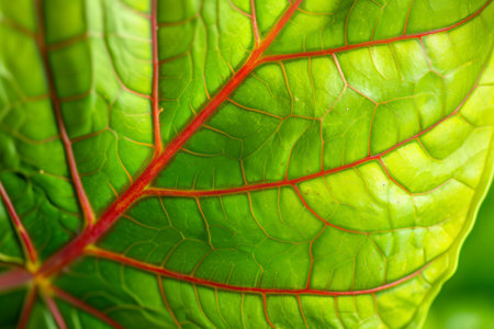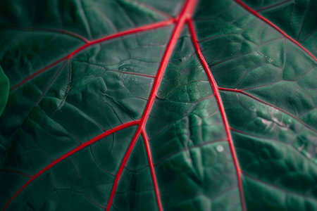 Close up of a green leaf with red veins. Abstract background.