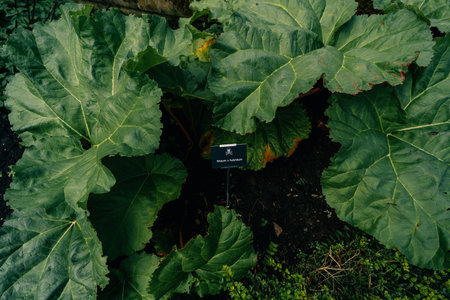 Rhubarb growing in the garden during spring