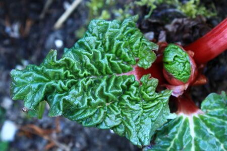 Young rhubarb that begins to grow in spring